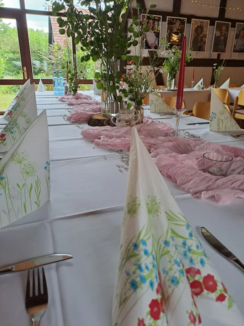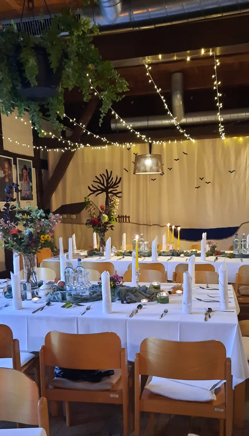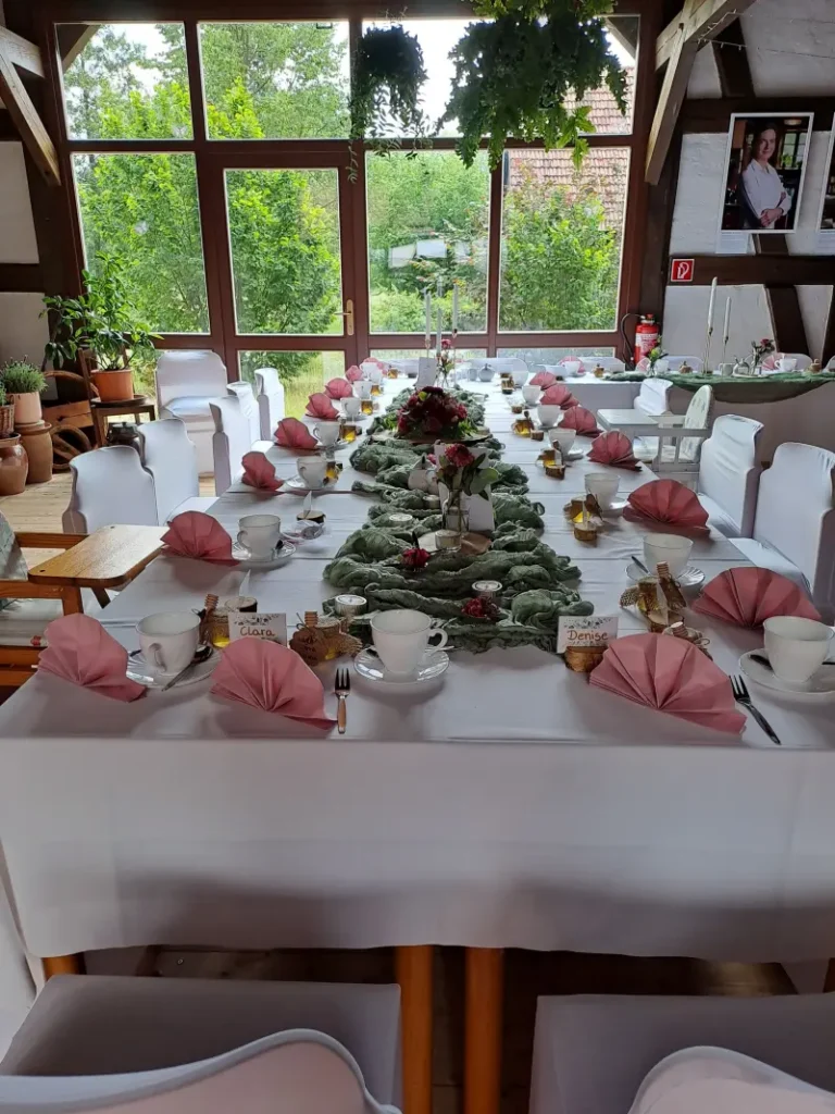 Von der liebevollen Dekoration bis zur köstlichen Verpflegung – wir kümmern uns um jedes Detail, damit Ihr Event unvergesslich wird. Egal ob Sie im kleinen Kreis feiern oder eine größere Veranstaltung planen, wir gestalten gemeinsam mit Ihnen ein Erlebnis, das beeindruckt und in Erinnerung bleibt.