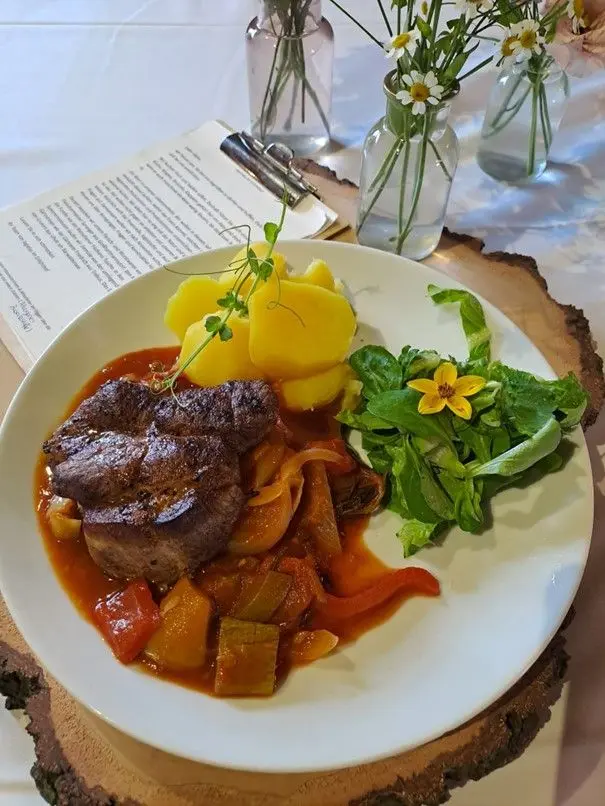 - Für Gruppen bieten wir Ihnen vorher 3-4 Gerichte an. Wir kochen traditionelle deutsche Küche, Fischgerichte, vegan oder vegetarisch. Sie können uns gerne mitteilen, in welche Richtung unser Angebot gehen soll, damit Ihre Gäste zufrieden sind.