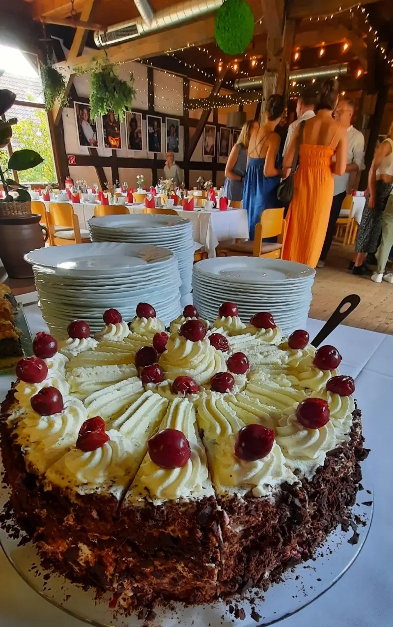 - Sie können bei uns zu Mittag oder zu Abend essen oder Kaffee mit selbstgebackenen Kuchen, Torten sowie Eis genießen.