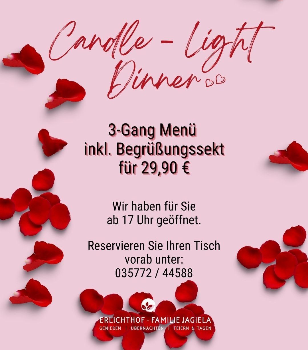 Am 14.2. können Sie ab 17 Uhr bei uns mit Ihren Liebsten
